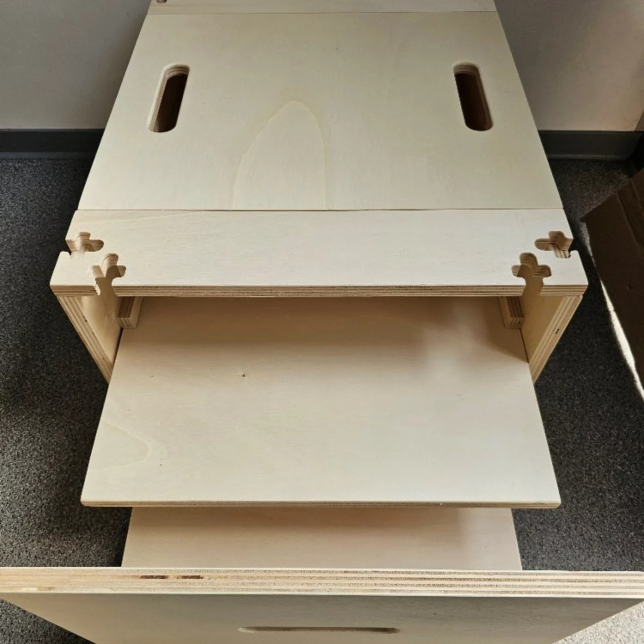 Caisson tiroir avec ou sans planche intermédiaire. Permet le placement d’une cuisinière.