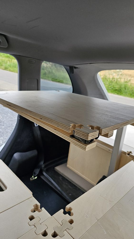 Cette table peut-être placée à gauche ou à droite du milieu du kit. Il est donc possible de permuter la table et le caisson C. Vous pourrez aussi l’utiliser à l’extérieur du véhicule pour manger au bord de l’eau par exemple.